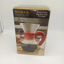 BonJour Coffee & Tea 20-Oz. Pour Over Glass Brewer And Pitcher Red Handle (OFC)